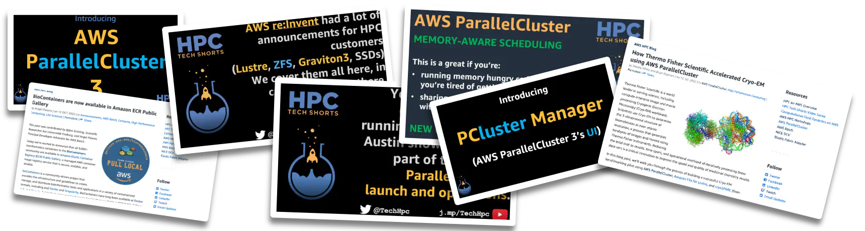 You can find us on Twitter at @TechHpc, on YouTube in the HPC Tech Shorts Channel, or blogging to the world from the AWS HPC Blog Channel. Please reach out and let us know what you’re finding hard, or easy.